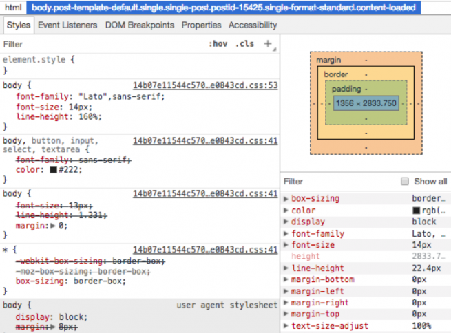 Además, puede aumentar los márgenes, disminuir el tamaño de la fuente y verificar cómo se verán los elementos con colores. A esto se suma la capacidad de editar la estructura HTML de una página, añadir y modificar textos, clases, IDs, e incluso borrar líneas de código. Dentro de la edición de estilos se pueden asignar estados a las clases o elementos seleccionados y revisar todos los estilos aplicados o heredados de un elemento.
