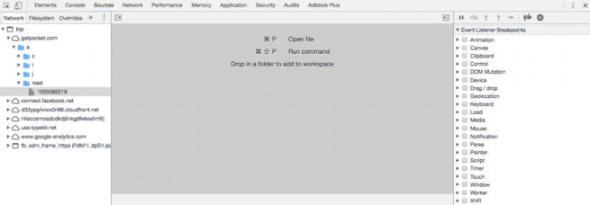 Permite asignar puntos de interrupción desde la sección Event Listener Breakpoints. Pudiendo marcar eventos, los cuales se encuentran categorizados de acuerdo al tipo de acción a ejecutar.