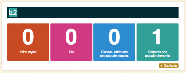 El punto más alto del gráfico es una declaración que está usando un #ID (gridle-settings) para seleccionar el elemento, que da una puntuación de 100.
