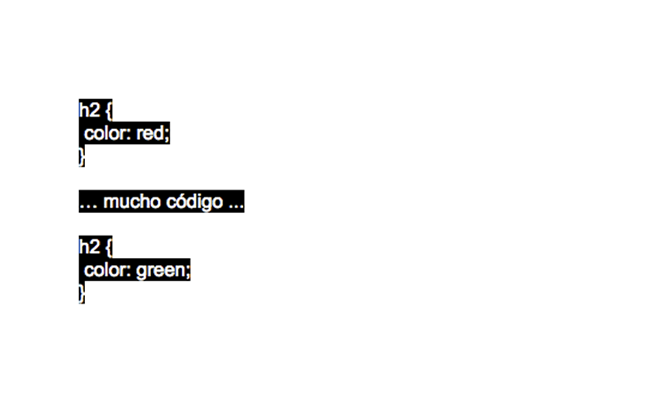 Si tenemos el siguiente código, el color que quedará instaurado será el verde por el hecho de haberlo escrito después.