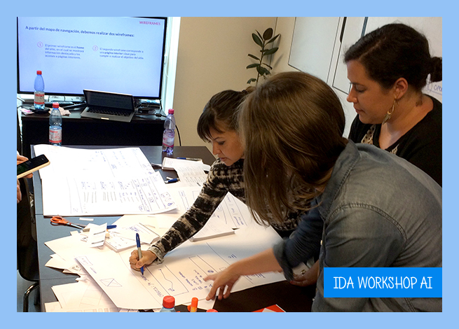 Al igual que en el workshop anterior, los participantes conocieron nuestra metodología centrada en el usuario y desarrollaron un proyecto mediante actividades de cardsorting, mapas de navegación y wireframes, aunque esta vez, el prototipo debía ser realizado en forma grupal.