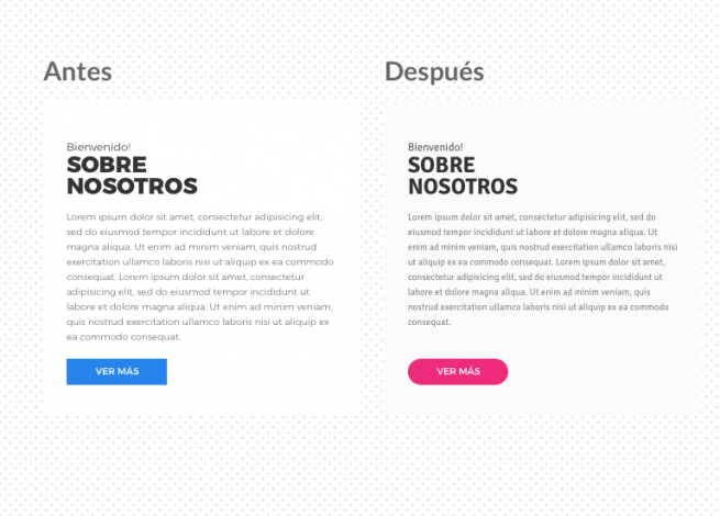 Los elementos como botones y cajas de contenido marcan una presencia especial dentro de un sitio, ya que tienen la capacidad de lucir serios, divertidos y dinámicos. Con unos simples ajustes en el radio de los vértices, los botones y las cajas del sitio lucirán diferentes.