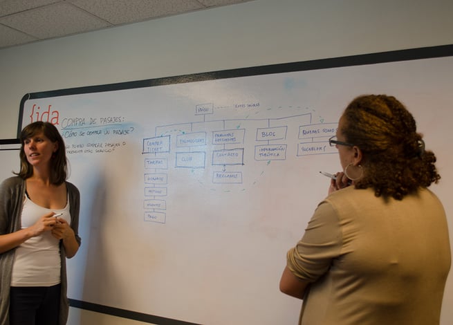 Con esto en mente y uniéndonos a la celebración internacional de AI, realizamos nuestro primer workshop de Arquitectura de Información. En este evento, nuestro equipo de profesionales (Kathe, Sofía y Claudio) compartieron nociones elementales sobre nuestra metodología de trabajo y el diseño centrado en el usuario, a profesionales de distintas áreas.