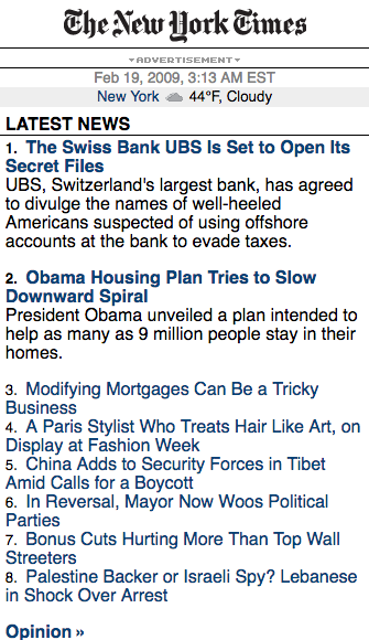 El sitio móvil del periódico es un claro ejemplo de cómo, durante esta década, el diseño responsive se ha vuelto un estándar en la industria. Pasamos de una “adaptación” para dispositivos móviles a un único sitio que se transforma acorde al dispositivo en que se encuentra.