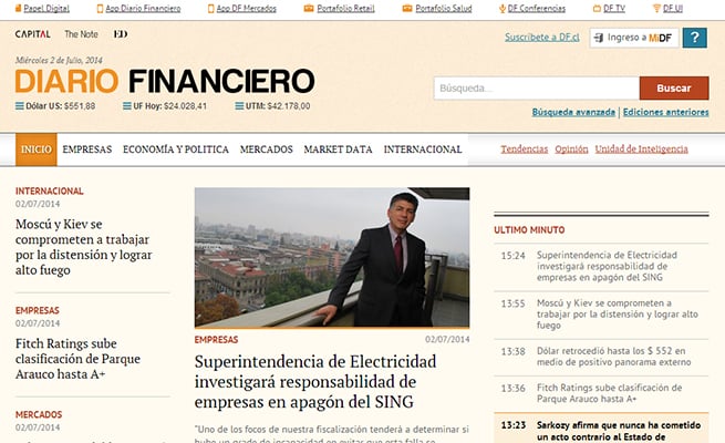 El nuevo diseño del diario líder en información financiera de Chile significó un año de arduo trabajo, donde pusimos a prueba todos nuestros conocimientos y habilidades para entregar un sitio web acorde a las nuevas exigencias de la industria de los medios digitales. Basándonos en la experiencia en Revista Capital Online (el primer medio online full responsive de Chile), logramos construir una plataforma adaptable a cualquier pantalla o dispositivo, sin reducir con ello la calidad del contenido desplegado. DF Online es nuestro segundo medio online Responsive Web Design en un mercado donde este formato es una excepción, con no más de 5 medios similares.