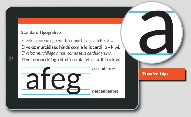 Otro punto importante está dado en el tamaño de fuentes para dispositivos móviles. Considerando el aumento de la navegación web a través de móviles y el diseño responsive, se hace necesario establecer un tamaño mínimo para la correcta lectura de contenidos. En los diseños que desarrollamos en IDA utilizamos 14px como un piso mínimo, considerando que muchos smartphone poseen resoluciones bajas y una fuente más pequeña haría el texto ilegible. En teléfonos móviles con tecnología retina display esta limitante es superada por el aumento de la densidad de pixeles.