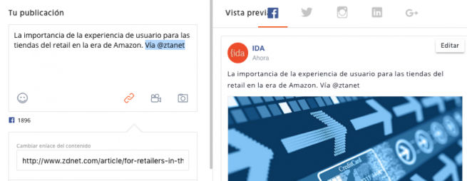 En el caso de Facebook, decidimos programar y publicar directamente desde la fan page. Es cierto que se pierde la costumbre, pero es un sistema nativo de la propia red social que funciona bien.