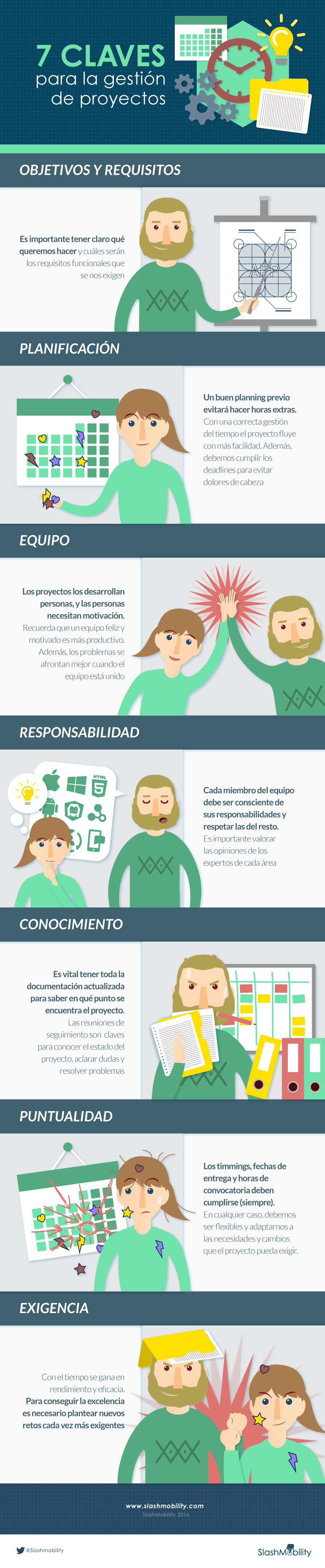 Una buena gestión de proyectos es fundamental para el éxito de cualquier iniciativa. En SlahMobility definieron las siete claves para la gestión de proyectos, identificando cuáles son las acciones principales y cómo el cumplirlas ayuda a ejecutar correctamente proyectos de software.
