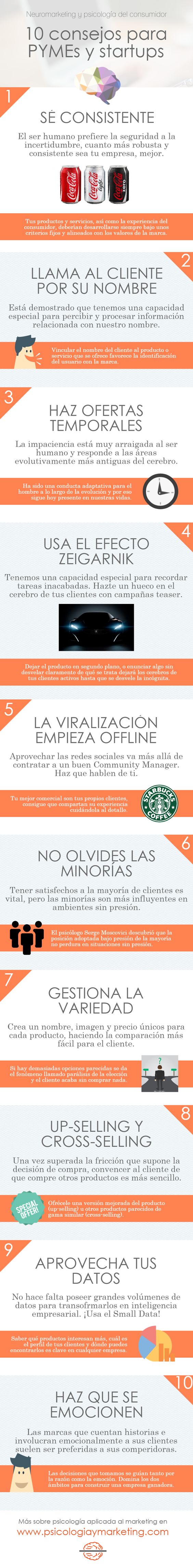 Aprovechamos de compartirles esta infografía 10 recomendaciones para aplicar un excelente neuromarketing en pymes y startup.