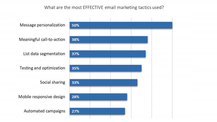 Otra de las tendencias que deberíamos considerar, luego de la personalización del mensaje, es incluir llamadas a la acción. Un 38% de los encuestados resaltó que incluir aquel elemento entrega altos grados de éxito. Este dato presenta finalmente un desafío a todo equipo: el llamado debe ser creativo para lograr impacto.
