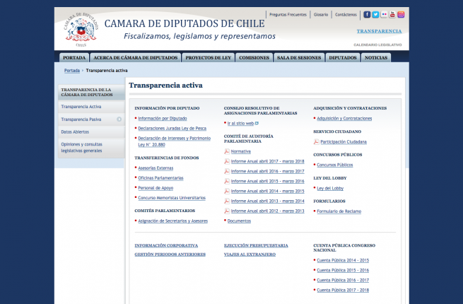 A partir del año 2009, en Chile rige la ley de Transparencia de la Función Pública y de Acceso a la Información de Administración del Estado. Si bien gran parte de estos datos se pueden solicitar a través de los sitios web de los organismos, este acceso a la información no siempre es amigable de cara al usuario.