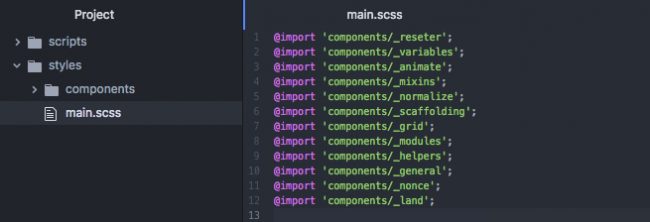 Ejemplo: En nuestro archivo main.scss tendremos importado todos los archivos sass de la carpeta components, los cuales contienen los partials que construyen nuestros estilos.