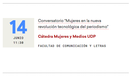 Además, el 14 de junio se realizará un conversatorio sobre el rol de la mujer en las nuevas plataformas y lenguajes del periodismo, a través de la tecnología.